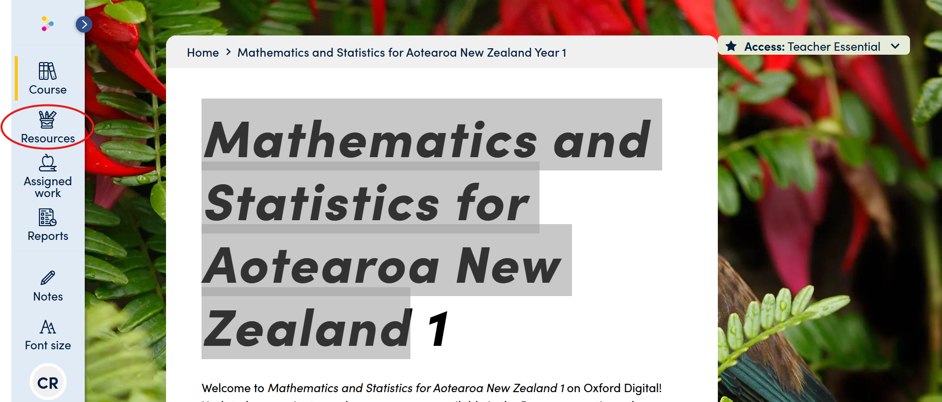 - Once you log into your Oxford Digital account and select a text. Click 'Resources' in the left side menu