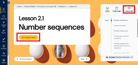 - Click the yellow button reading Go to lesson plan, or alternatively, select lesson plan in the top right corner.