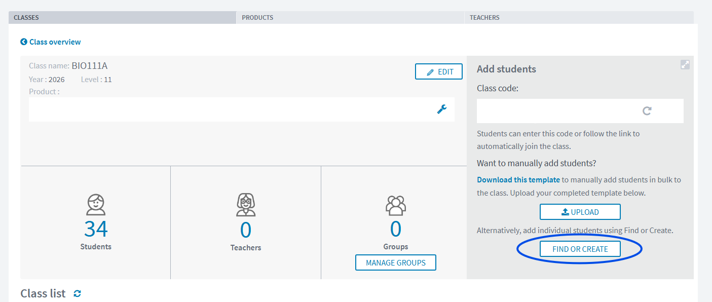 Any teacher can edit and view classes for their school. If you have just registered a new Oxford Digital teacher account, your account must first be validated by another teacher at your school, or by contacting the Oxford Digital Support team.